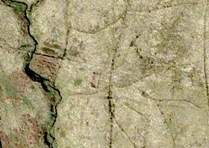 This is a satellite shot of “Lada” just to the left of Hermitage Castle on Pont’s map. (or at least I think it is. It has never been excavated.)