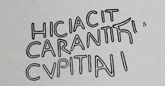 It was recovered form the river, and found to measure 5′ 8 inches. by 1′ 9 inches. by 11 inches., and to carry the inscription “Hic Iacet Caratini fili Capiteiani” (sic) which translates as “Here lies Carantus,