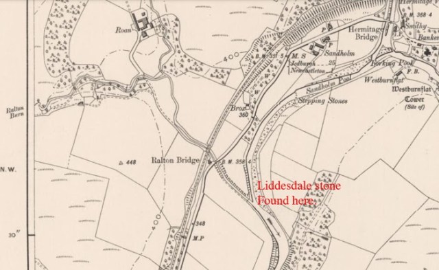 “In August 1933, a stone was found in the river bed of the Liddel, just below the inflow of Ralton Burn.