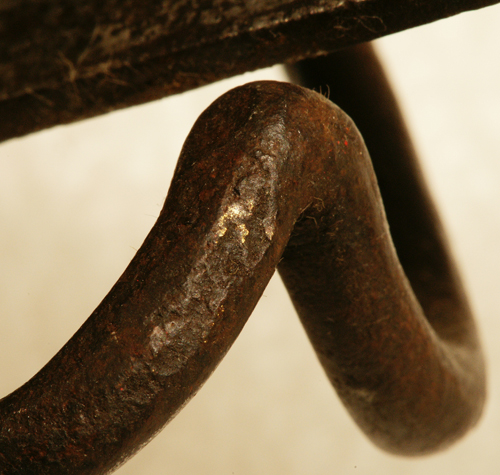I have never seen another like it. It has more sword cuts, and lance damage than any other, and the riveted reinforce at the neck is almost unique. It has been added to stop sword cuts upwards to the neck, and to prevent a lance glancing upwards from the surfaces of the breastplate.